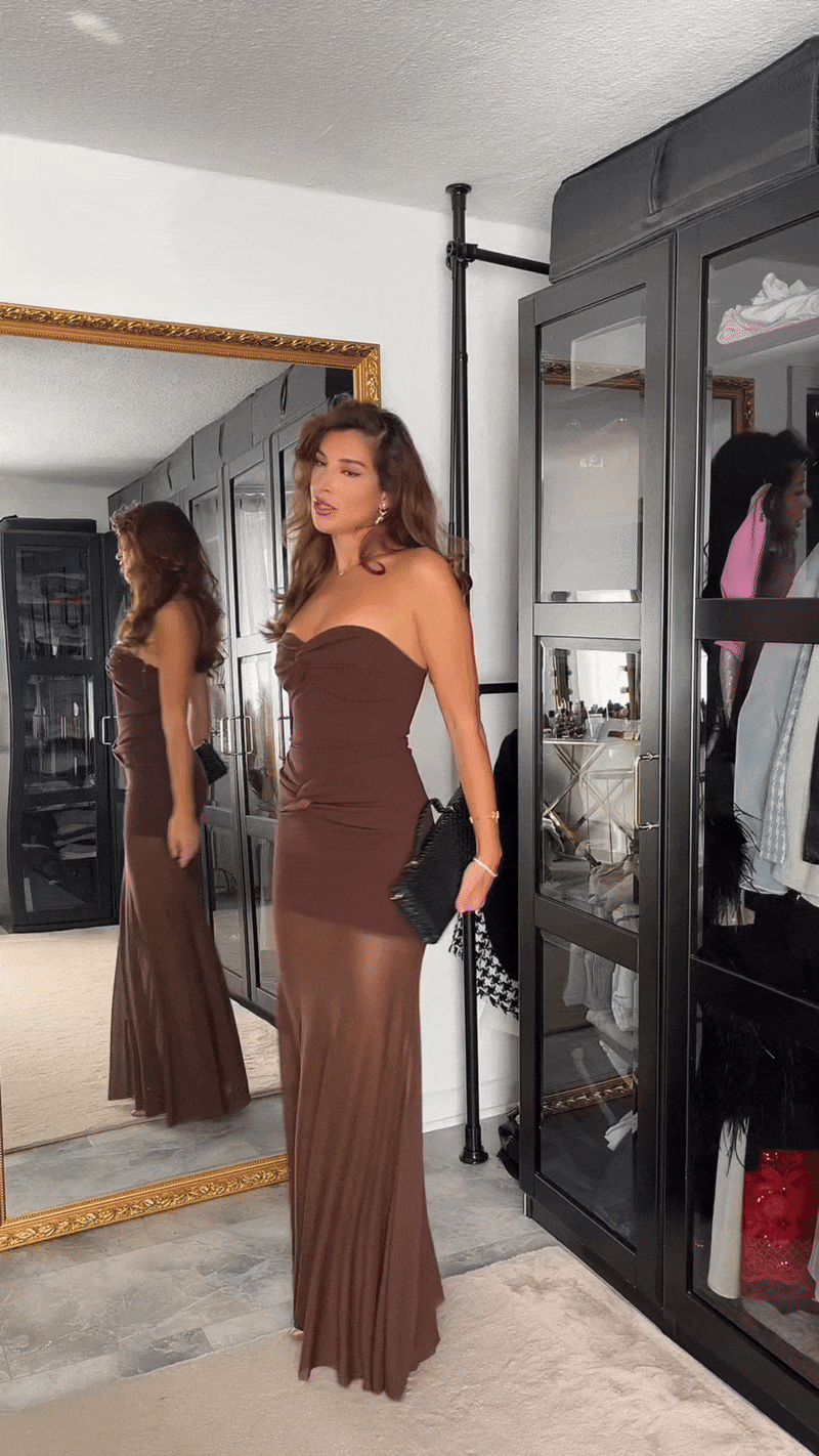 The Clarisse Maxi Dress is your go-to for effortless elegance. Designed in airy mesh with a flattering strapless neckline and a lined bodice for comfort, it flows into a graceful skirt that moves beautifully with you. The hidden silicone tape keeps it secure all night, so you can enjoy every moment with confidence. Perfect for weddings, parties, or special evenings out—just add heels and gold jewellery for a timeless, head-turning look.