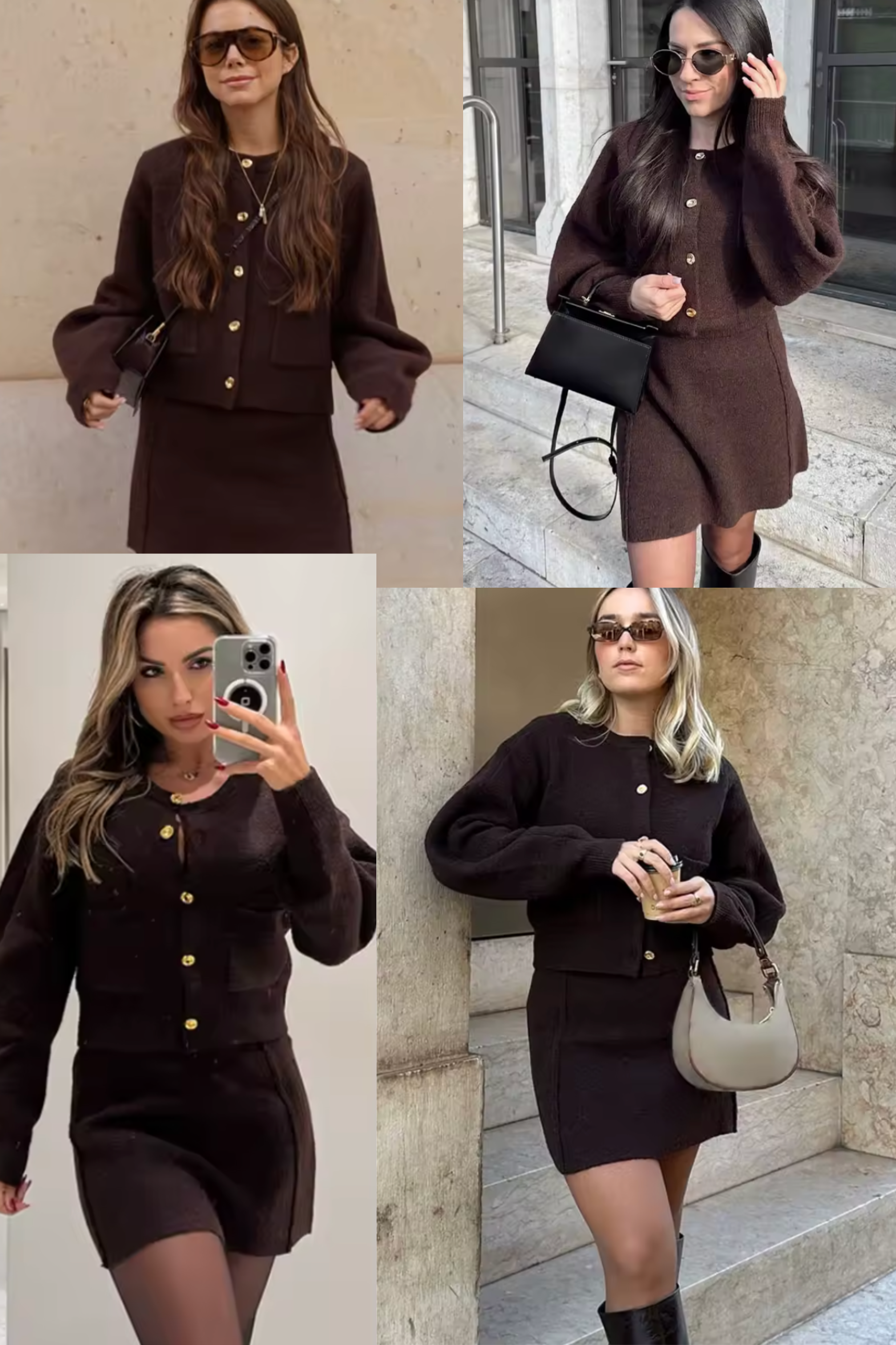 Cozy up in style with the Paloma Plain Knit Cardigan and Short Set, the ultimate blend of comfort and trend. Featuring a round-neck, long-sleeve cardigan with gold button details and front patch pockets, this matching knit set is effortlessly chic. Perfect for fall and winter, it delivers warmth without sacrificing style. Aesthetic, on-trend, and made for lounging or layering—Paloma is your new go-to.
