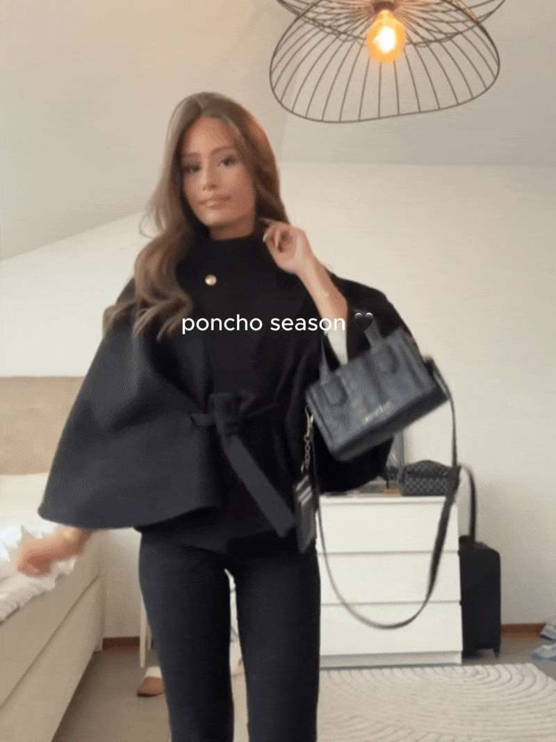 The Novesca Poncho Jacket blends effortless chic with cozy sophistication. Featuring a poncho-cut design with flowing sleeves, a high collar, and a waist tie, it flatters while keeping you comfortable. Perfect for layering in fall and winter, it adds instant polish to any outfit. Versatile, timeless, and easy to style—your new cold-weather essential.
